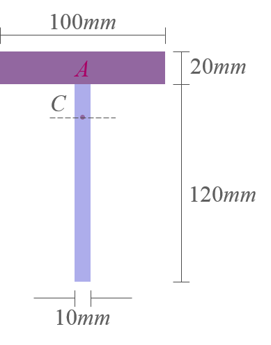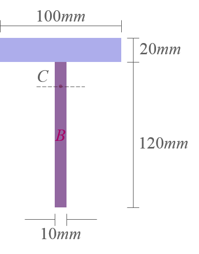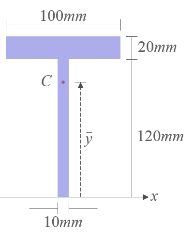 - 따라서, 도심 \(C\)를 지나지 않는 \(x\)축에 대한 단면 전체의 \(I_x\)는 다음과 같다. $$ I_x = \bar I_x + \bar y^2 A $$ 여기에서 \(\bar I_x\)는 단면의 도심축에 대한 단면 2차모멘트, \(\bar y\)는 단면 2차모멘트를 계산하기 위한 \(x\)축으로부터 단면의 도심축까지의 거리이다.